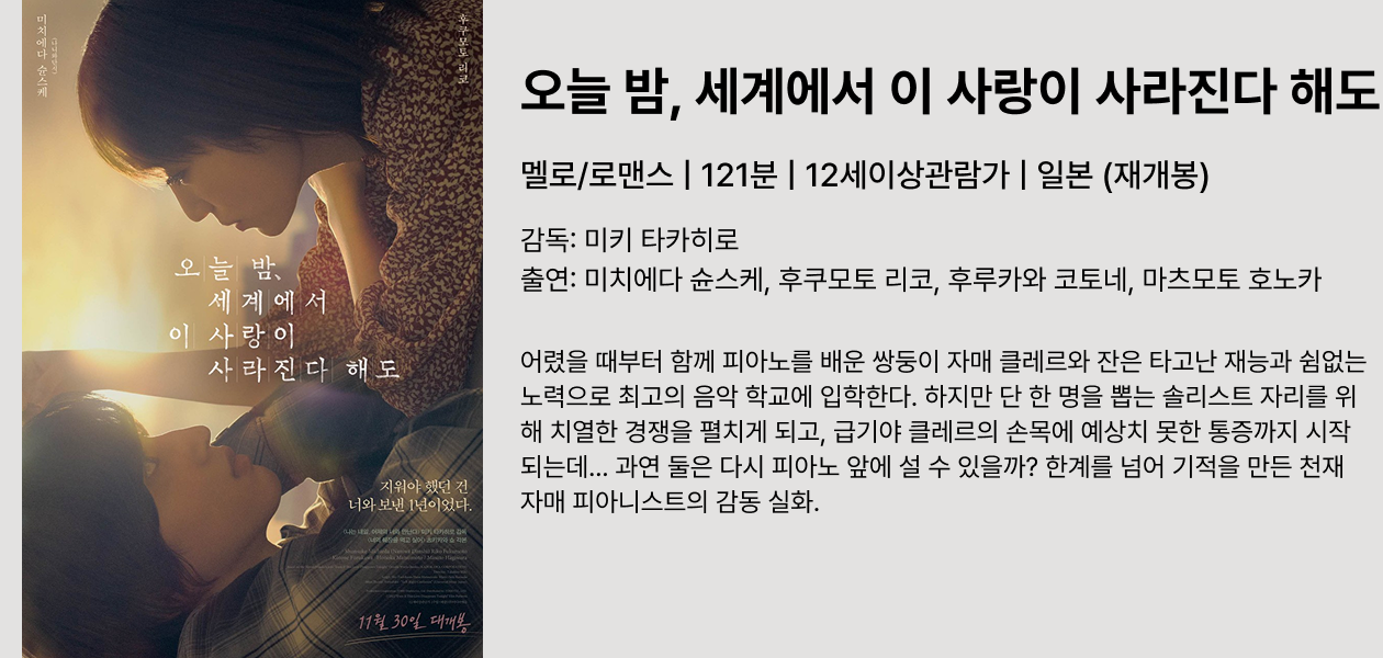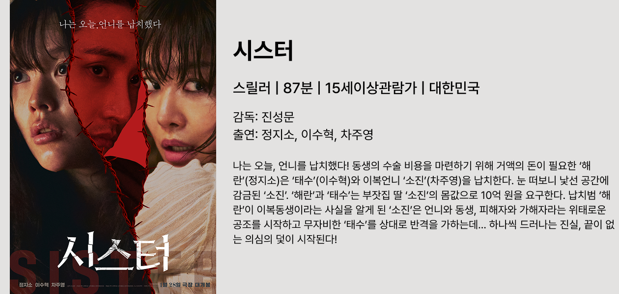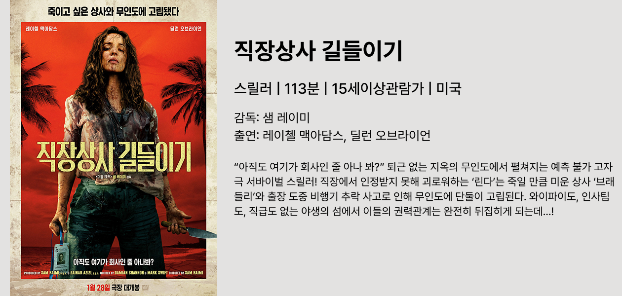 μ΄λ² μ£Όλ <νλΌμ΄λ©μ΄νΈ>κ° κ°λ΄νκ³ , λ€μ μ£Όλ <λλ¦Ό ν>, <νλ μ μ€> λ± κ³΅ν¬ μ₯λ₯΄ μνλ€μ΄ μ°μ΄μ΄ κ°λ΄μ μλκ³ μμΌλ κ³΅ν¬ μν λ§€λμμ΄μ λΆλ€μ κ·Ήμ₯μ μ°Ύλ κ²λ μ’μ κ² κ°λ€μ.