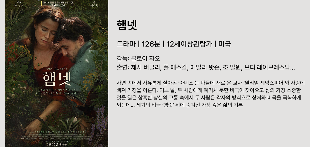 โก ๋๋๋ ํธ๋ผํ, ๋ก๋ฒํธ ๋๋๋ก ๊ณต๊ฐ ๋น๋ โข โ12ยท3 ๋น์๊ณ์โ ๋ค๋ฃฌ ์ฒซ ๊ทน์ํ ์ ์๋๋ค โฃ 2026 ๋ฒ ๋ฅผ๋ฆฐ๊ตญ์ ์ํ์ ์์์ ๋ฐํ โค ์ 98ํ ์์นด๋ฐ๋ฏธ ์์์, ๋์ฆ๋ ํ๋ฌ์ค์์ ์์ค๊ณ ํ๋ค โฅ ๋กฏ๋ฐ์๋ค๋ง, 3-4์ ์ฌ๊ฐ๋ด ๋ผ์ธ์