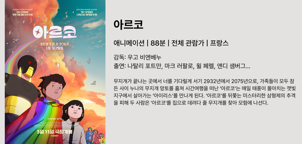 μ΄ λλ κ΄κ°μ λͺ¨μΌλ©° ν¬κ² ν₯νν μνμ΄μ£ . '볡μ'μ μμ¬λ λΆλ©Έμ μμ¬μΈ κ² κ°μ΅λλ€. μΈμ λ΄λ 곡κ°μ λΆλ¬μΌμΌν€μ£ . 3μκ°μ΄ λλ κΈ΄ λ¬λνμμ κ°μ§ μνμ΄μ§λ§ κ±°λν μ€μΌμΌμ μλνλ©° μμΈ‘ λΆκ°λ₯ν μ¬λ―Έλ₯Ό μ£Όλλ°μ. νλμ€ μν νΉμ μ μμ΄ μμ΄λ©° κ°μλ μνμΈμ§λΌ μ°λ¦¬κ° μ΅μν ν 리μ°λμ κ³ μ μ 보λ λ§κ³Όλ μ‘°κΈ λ€λ₯Έ λ§μ 보μ¬μ£Όλ κ²μ΄ μ΄ μνμ λ¬λ―Έ μλκΉ μΆμ΅λλ€! |